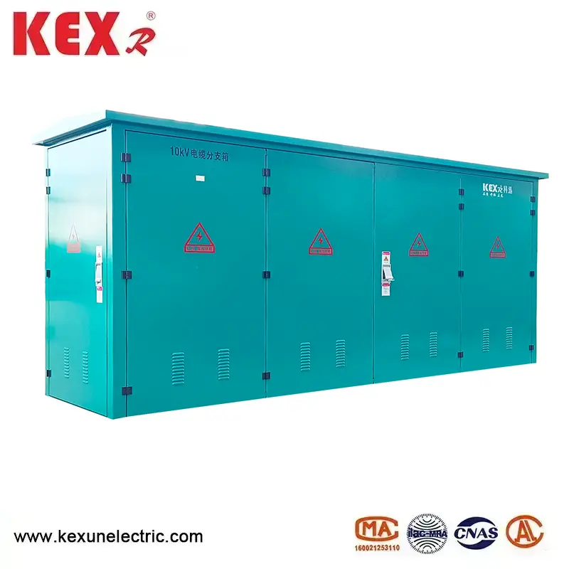 Ang panlabas na cable box, na espesyal na ginawa ni Kexun, isang tagapagtustos ng paghahatid ng kuryente at kagamitan sa pamamahagi sa China, ay isang kagamitan sa engineering engineering na malawakang ginagamit sa sistema ng pamamahagi ng kuryente sa mga nakaraang taon. Ang mga pangunahing tampok nito ay ang pagbubukas ng bidirectional door at ang paggamit ng wall bushing bilang ang pagkonekta ng bus bar. Karaniwan, ang na -rate na kasalukuyang 630A bolt ay ginagamit upang ayusin ang koneksyon ng konektor ng pagkonekta, na umaayon sa pamantayang DIN47636. Model: 35kv Tatak : Kexr